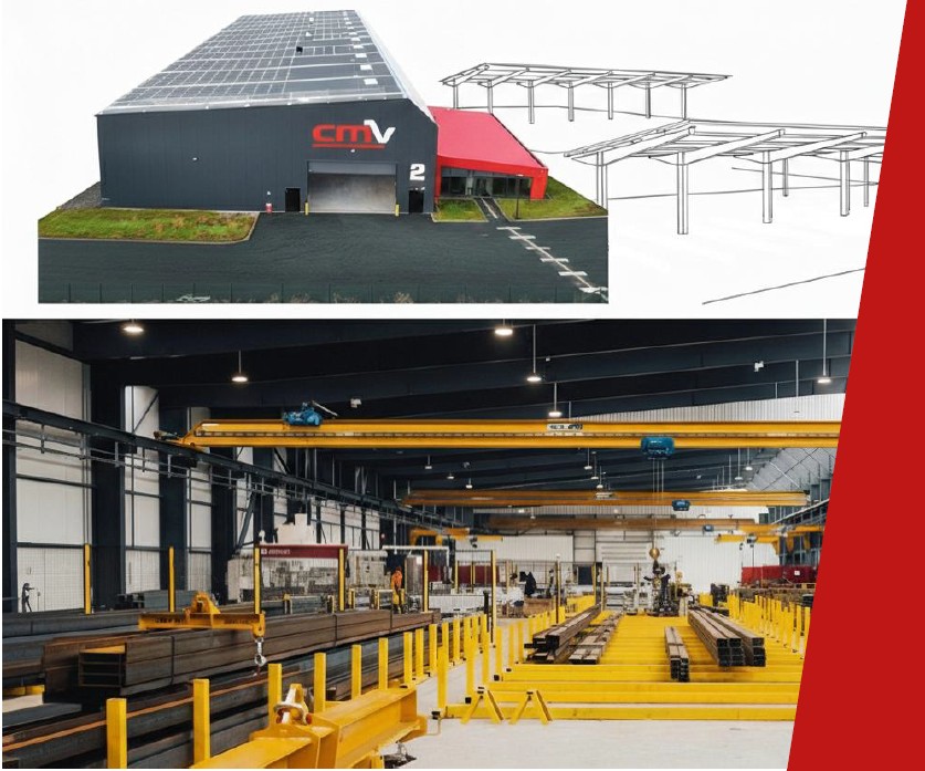 L’atelier CMV2, qui fabrique principalement ombrières de parking, dispose d’une forte automatisation (soudage semi-automatique, découpe de tôles et usinage de profils acier entièrement automatisé) et d’une centrale photovoltaïque en toiture pour une usine partiellement autonome en énergie. CMV dispose ainsi actuellement de 6000 m² d’atelier (atelier historique CMV1 : 2600m², nouvel atelier CMV2 3400 m²) sur 22000 m² de terrain.