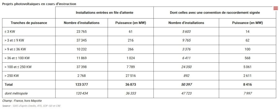 La puissance des projets en file d’attente a augmenté de 15% depuis le dernier trimestre de l’année 2024 pour s’établir à 36,9 GW, dont 8,4 GW avec une convention de raccordement signée.