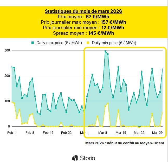 « Mars confirme la nouvelle donne du système électrique : une alternance entre des périodes où l’électricité est abondante et quasi-gratuite, et des périodes de tensions où l’énergie est rare, chère, et soumise aux risques géopolitiques. Dans ce contexte, la valeur se déplace vers la flexibilité : le stockage devient un levier essentiel pour transformer la volatilité des prix de l’électricité en une opportunité pour nos clients industriels », analyse Jean-Yves Stephan, CEO & cofondateur de Storio Energy.